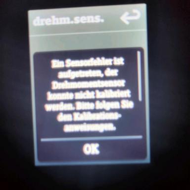 Ein Sensorfehler ist aufgetreten, der Drehmomentsensor konnte nicht kalibriert werden. Bitte folgen Sie den Kalibrierungsanweisungen.