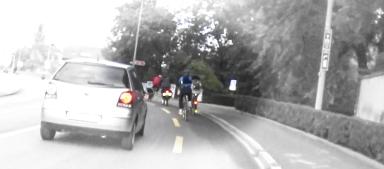 Überholden, dann Arm raus zum RECHTS abbigen und den anderen knapp vor dem Vorderrad den Weg abschnieden. Weit ist er nicht gekommen, hatte nur eine Tretmühle.