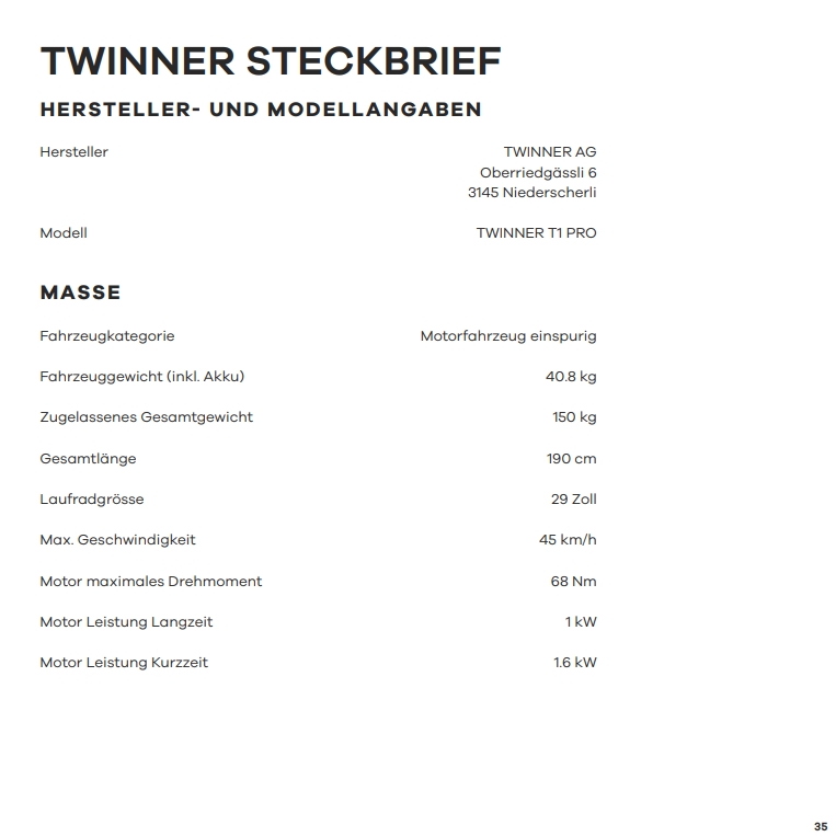 Aktuell hat der Twinner nur eine Zulassung für die Schweiz.