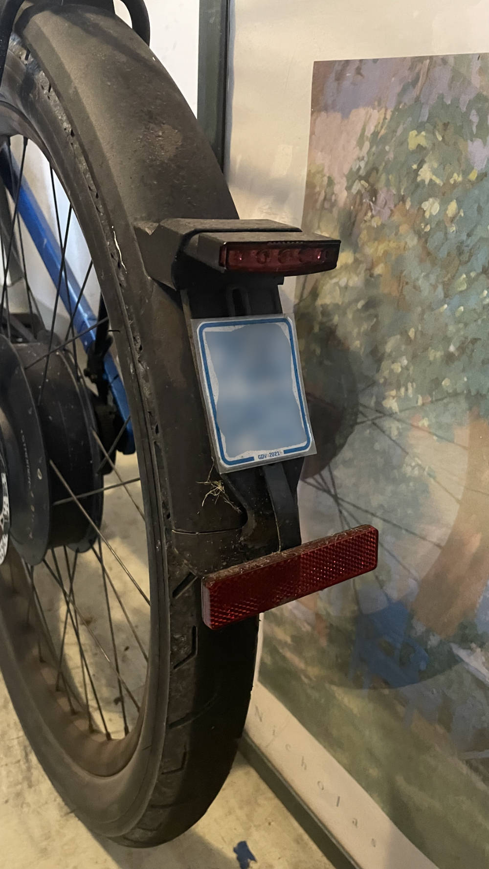 Die 2 Magnete habe ich mit Metallsenkschrauben und Muttern (inkl. Schraubensicherungslack) direkt an die Stelle unter dem Rücklicht am Stromer angebracht, die Metallscheiben entsprechend am Schild. Die 7mm Höhe sind kein Problem, das Kennzeichen ist beleuchtet und steht nicht irgendwie hoch raus.