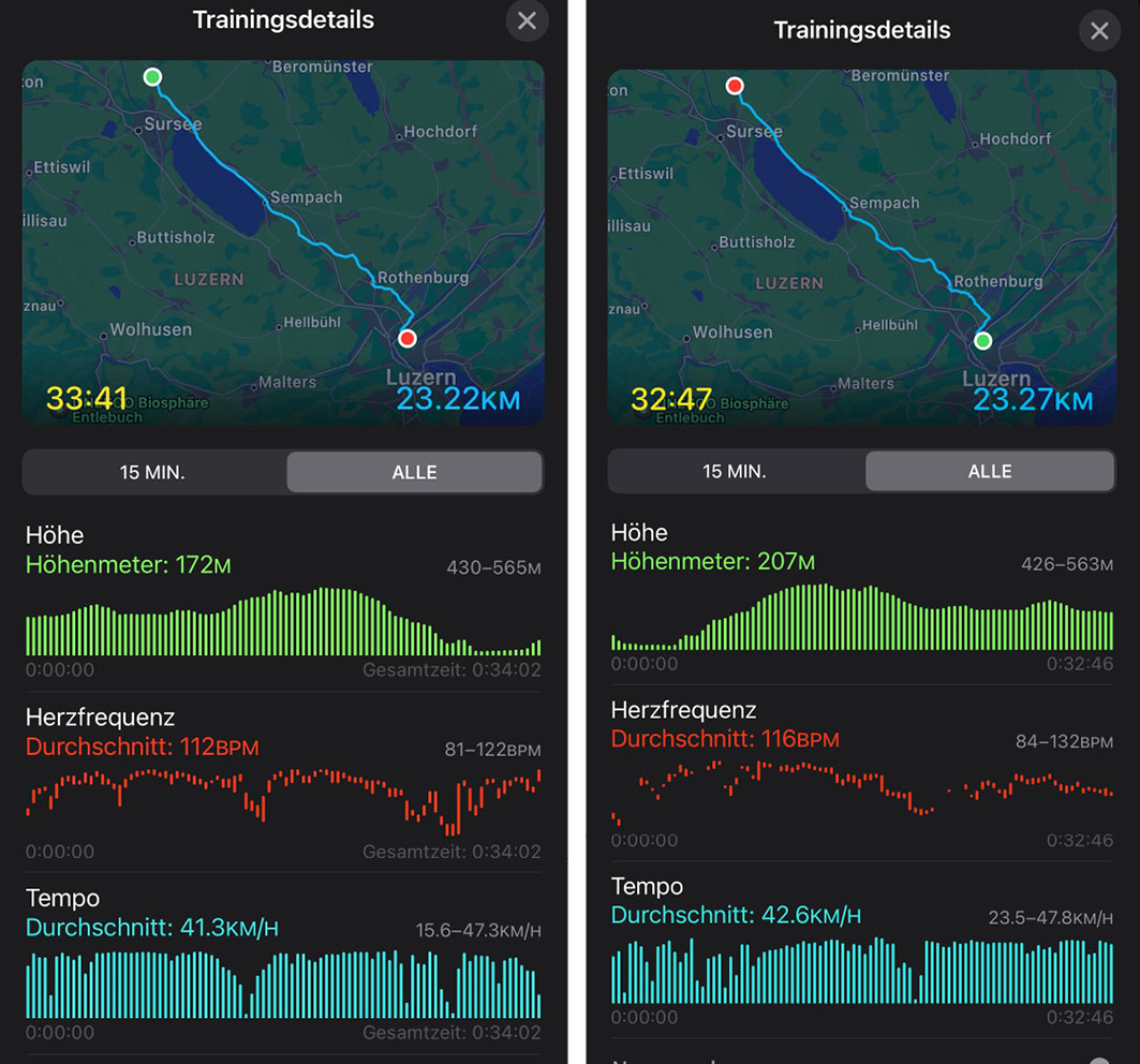 Habe gestern den Hin- und Rückweg meines Arbeitsweges aufgezeichnet.