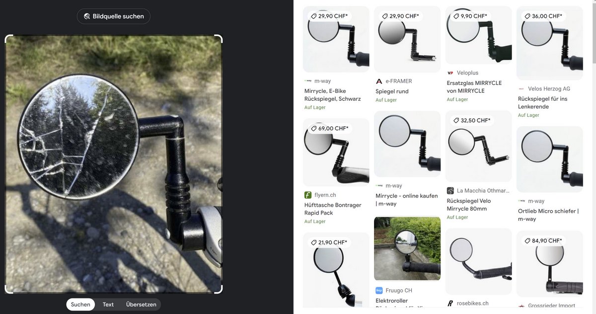War vor einem Coop parkiert und als ich zurückgekommen bin, war der Spiegel zersplittert. Ich vermute, dass jemand dran hängengeblieben ist und der Stromer umgefallen ist. Der Stromer wurde immerhin gnädigerweise wieder aufgerichtet.