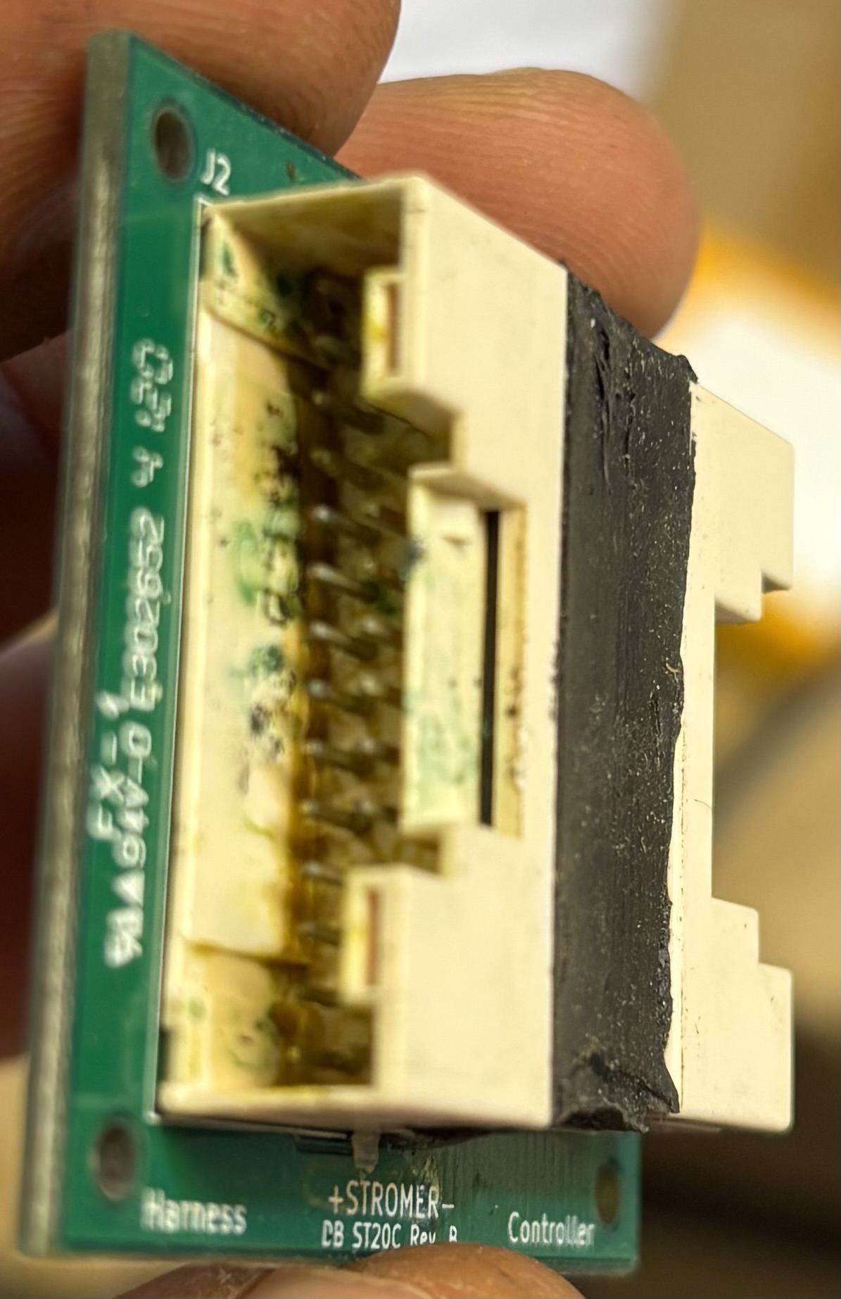 Das Distributionboard ist einfach gestrickt. Dein Board ist gemäss Bilder sehr stark oxydiert. Die entsprechenden Multipin-Stecker dürften es auch sein. Ich würde den PCB sowie die Pins mit Isopropylalkohol und einem Glasfaserpinsel säubern und dann wieder prüfen. Das Board hat keine aktive Elektronik verbaut. Wenn alle Leiterbahnen und Löstellen, sowie die Pins OK sind, sehe ich keine Probleme. Neu ist es hier zu haben.