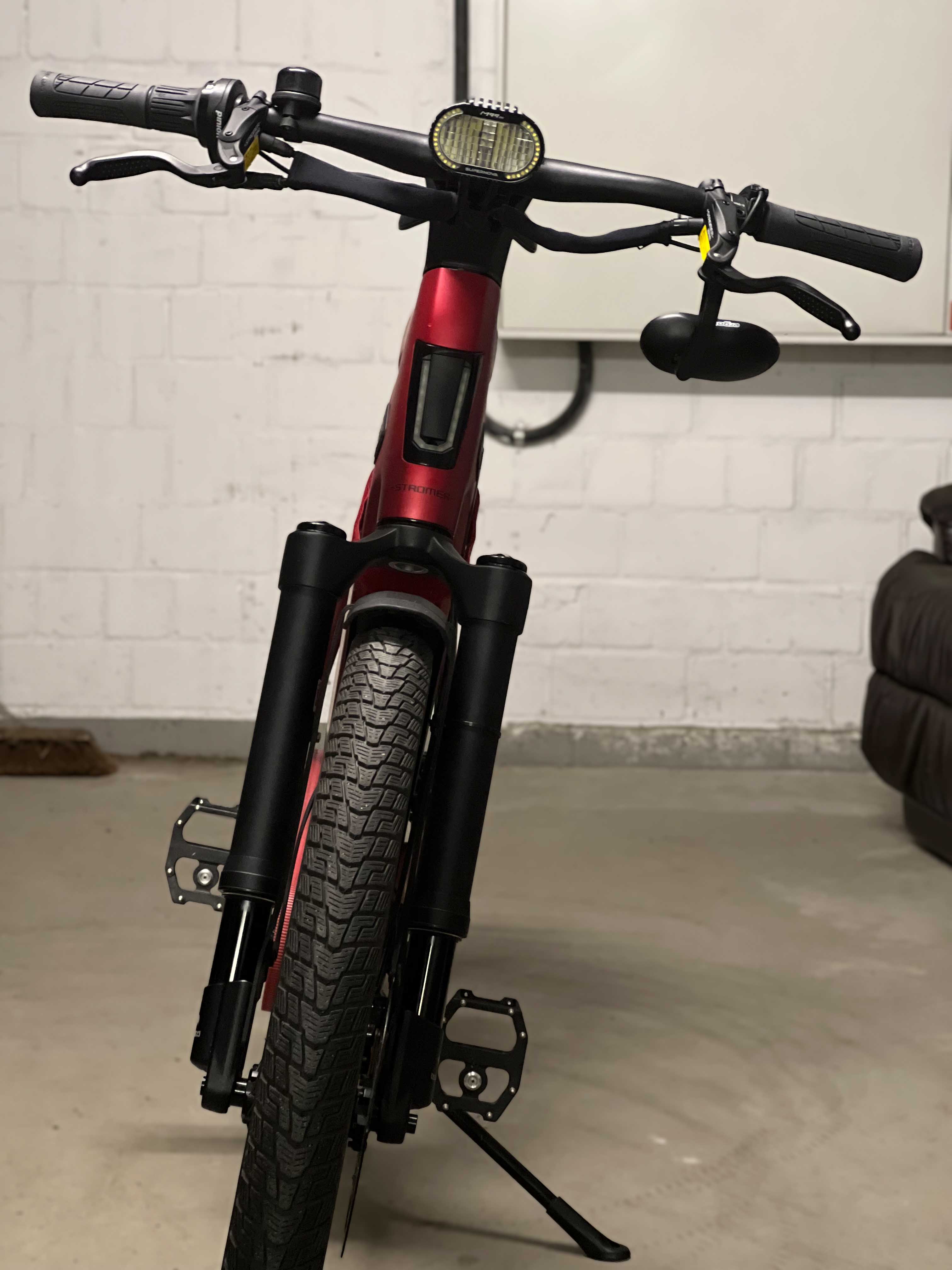 Supernova M99 Pro am ST3 Pinion nachgerüstet - Napfkuchen - 19.02.2023 Hallo Nachdem mir mein Händler den Scheinwerfer bei der Bestellung nicht nachrüsten wollte (... laut Stromer ist das nicht möglich, tut mir leid) hatte ich jetzt knappe drei Monate das Vergnügen mit den Lichtklecksen des Roxim durch die Dunkelheit zu sausen. Für den Anbau der Federgabel habe ich zu einem anderen Händler gewechselt (war dort mal eben 250 € günstiger und der erste wollte vom Kostenvoranschlag nicht runtergehen) und bei der Gelegenheit nochmal nach der Umrüstung gefragt. Dort hieß es dann zu dem Thema: - Stromer überlegt, gegen das (keine Ahnung, welches) Forum wegen der Anleitung vorzugehen - Es gibt keine Freigabe von Stromer, daher darf man es nicht montieren - Eigentlich geht es aktuell auch gar nicht - Gibt es zurzeit Verhandlungen mit Supernova für eine Nachrüstversion des M99 Pro (dauert aber noch mindestens sechs Monate) Ich habe dann Supernova angeschrieben und um Rat gefragt – zumal der von Stromer freigegebenen Scheinwerfer auch erst noch produziert werden müsste und am Ende dann auch ein spezielles Stromer-Preisschild bekäme. Von dort kam eine sehr hilfreiche E-Mail zurück (unter anderem mit dem Hinweis dass zurzeit nagelneue M99 Pro bei eBay und in den Kleinanzeigen verkauft werden, die eine spezielle Schaltung aufweisen und nicht passen) mit der (und den Hinweisen aus verschiedenen Foren) ich dann den Umbau durchgeführt habe. Der mechanische Anschluss am Lenker ist ein Eins-zu-Eins Austausch, völlig problemlos. Das Strom/Buskabel ist lang genug, um es hinter dem Akkufach bis in den Bereich über dem Getriebe zu verlegen. Das Lösen der insgesamt 12 Schrauben im Akkufach ist etwas fummelig, aber doch gut machbar. Über dem Getriebe gibt es mehrere Steckverbindungen und eine Zusatzsicherung für ein dünnes rotes, sowie ein schwarzes, dünnes Kabel. Dort habe ich die Stromversorgung mit den mitgelieferten Abzweigverbindern angeschlossen. (Eigentlich wollte ich eine Steckverbindung anbringen, das wäre aber ein deutlich sichtbarerer Eingriff gewesen. Die Abzweigverbinder kann man einfach wieder entfernen, sie sind schön klein und komplett mit Silikonfett(?) gefüllt, das hat mir die Entscheidung leicht gemacht) Das neue Kabel hab ich komplett in der hinteren, unteren Seite platziert und wie ein Originalkabel mit einigen Stücken doppelseitigem Klebeband fixiert. Die Adern für den Busanschluss habe ich nicht verwendet und nach dem Abisolieren der Ummantelung abgeschnitten- Zusammenbau war etwas schwieriger weil die untere schwarze Abdeckung ja im Steuerrohrbereich eingesteckt und ansonsten mit den unteren Schrauben des Akkufachs gehalten wird, das muss man gut ausrichten. Da dort auch die Schaltzüge des Pinion laufen, braucht man eigentlich etwa vier möglichst kleine Hände. Ich lasse mir immer viel Zeit mit sowas ... Im Servicemenü kann man das Stromer Tagfahrlicht deaktivieren. Jetzt funktioniert es eigentlich genau wie vorher mit dem Roxim: Einschalten, System hochfahren, Licht geht an. Ausschalten, System runterfahren, Licht geht aus. Wenn es heller wird, schaltet der M99 auf Tagfahrlicht (hab ich erst bemerkt, als ich durch einen kurzen Tunnel gefahren bin und es kurz nach der Einfahrt plötzlich wieder eingeschaltet wurde) Das Licht ist einfach SO viel besser als mit dem Originalscheinwerfer! Kleine Nachteile: Der M99 ist mindestens doppelt so groß wie der Roxim. Fernlicht geht nicht mehr mit dem Knopf an der linken Seite, wo auch die Unterstützungsstufen verstellt werden. Man kann aber den mitgelieferten Fernlichtschalter anstelle des Hupenknopfs montieren (so hab ich das gemacht, da ich den komischen Piepser eh nicht benutze und eine Klingel bevorzuge) So (mit Federgable und Supernova) hätte ich mir das St3 Pinion gleich gewünscht - ich fahre damit seit Anfang November (außer bei strömendem Regen) täglich gute 18 km zur Arbeit und bin dabei schneller als mit Bahn und U-Bahn, aber auch schneller als mit dem Auto, weil zu meinen Zeiten alle anderen auch mit dem Auto unterwegs sind. Jetzt kann ich genug sehen und die Griffe werden mir nicht aus den Händen gerüttelt. Gruß Guido RE: Supernova M99 Pro am ST3 Pinion nachgerüstet - Großmeister T - 19.02.2023 Sehr cool! Hast du mal ein Bild davon? Ich würde mich sowas ja nicht trauen, finde es aber total genial. Wäre schon cool, wenn es da etwas Offizielles von Stromer gäbe, auch wenn das höchstwahrscheinlich - wie von dir schon geschrieben - teuerer sein wird. Aber dann wenigstens ohne Garantieverlust... RE: Supernova M99 Pro am ST3 Pinion nachgerüstet - bluecat - 19.02.2023 (19.02.2023, 20:36)Napfkuchen schrieb: Im Servicemenü kann man das Stromer Tagfahrlicht deaktivieren. Merci für Deinen guten Beschrieb. Es ist ein ärgerlicher Mangel, dass Stromer den Scheinwerfer nicht in der Optionenliste hat. Wie Du bemerktest, hilft Supernova gerne. Das Tagfahrlicht ist das einzige, was einen Stromer von Vorne von einem langsamen Velo unterscheidet. Es auszuschalten erhöt das Unfallrisiko. Ich plädiere dafür, diese Funktion zu entfernen. Eigentlich kann der Lampenkopf nicht goss genug sein. Zum Einen reduziert das den Subjektiven Blend-Eindruck, zum Anderen vergössert es den optischen Unterschied zum Velo. RE: Supernova M99 Pro am ST3 Pinion nachgerüstet - Napfkuchen - 19.02.2023 Zitat:Das Tagfahrlicht ist das einzige, was einen Stromer von Vorne von einem langsamen Velo unterscheidet. Es auszuschalten erhöht das Unfallrisiko Da bin ich ganz bei dir! Man hat allerdings im M99 Pro einen guten Ersatz, der bei ausreichender Helligkeit ebenfalls ständig eingeschaltet ist. RE: Supernova M99 Pro am ST3 Pinion nachgerüstet - Großmeister T - 20.02.2023 Großartig!! Bin dezent neidisch.