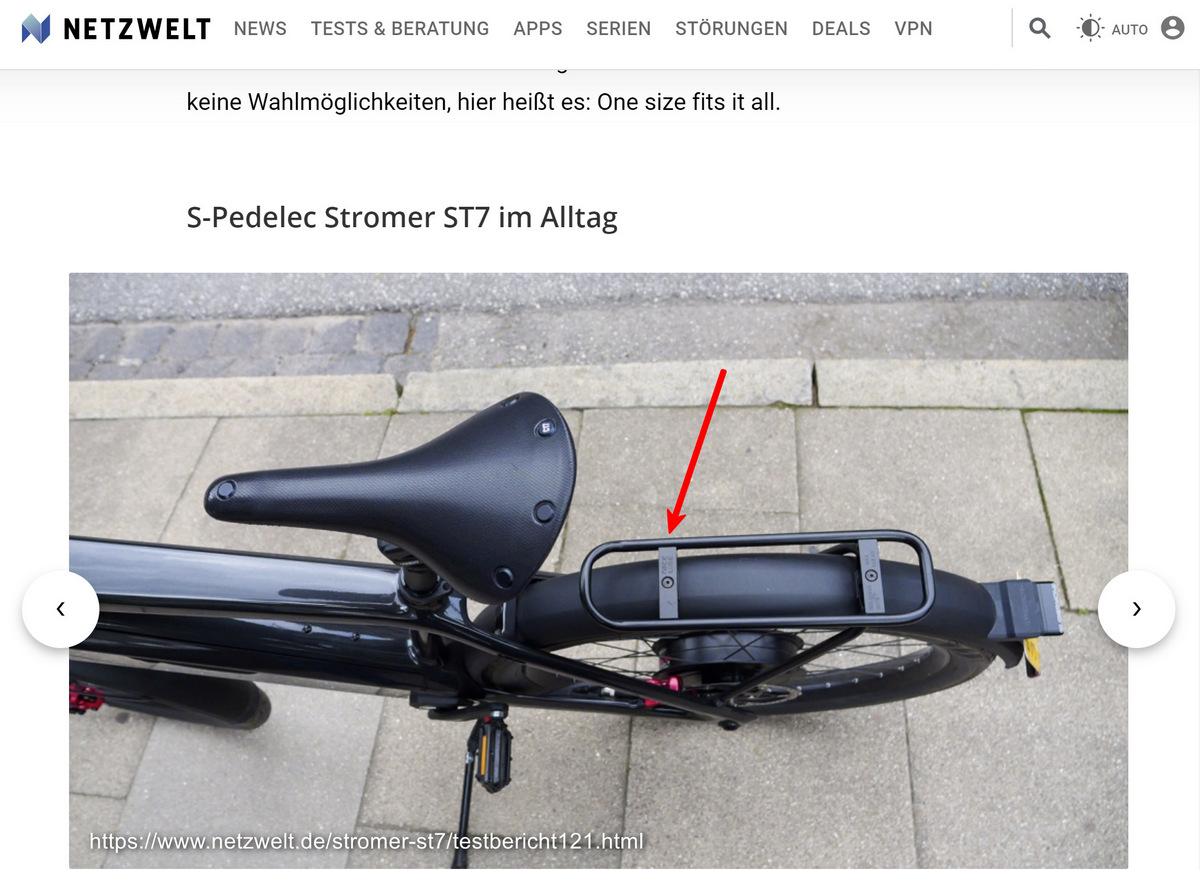 ...Vorsicht, ich habe den oben verlinkten Artikel für meinen ST7 bestellt und er passt NICHT. An meinem Gepäckträger fehlt die "Mittelstrebe", unter welcher man die Federklammer (oder wie das Teil heisst) befestigen kann. Keine Ahnung, ob man die Mittelstrebe auch als Zubehör kriegt. Ich hätte lieber auf den Flagshipstore gehört, denn dort wurde mir gesagt, dass es keine passende Federklappe gibt, was ich aber kaum glauben konnte, denn ohne Klammer erfüllt ein Gepäckträger nur den halben Zweck (Befestigung der Hinterradtaschen). An meinem ST2s konnte ich noch eine Klappe befestigen.