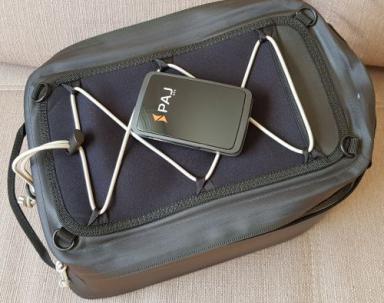 Im Alltag verberge ich den Tracker eher im Deckel der Gepäckträgertasche.