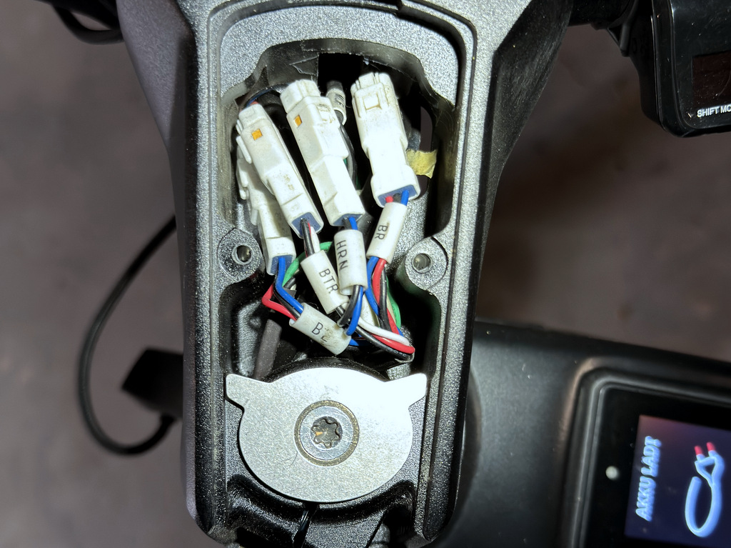 Die Kabel (BR) der beiden Bremshebel laufen durch den Vorbau. Sie sind jeweils mit einer JST-Steckverbindung zur Bikelelektrik verbunden.