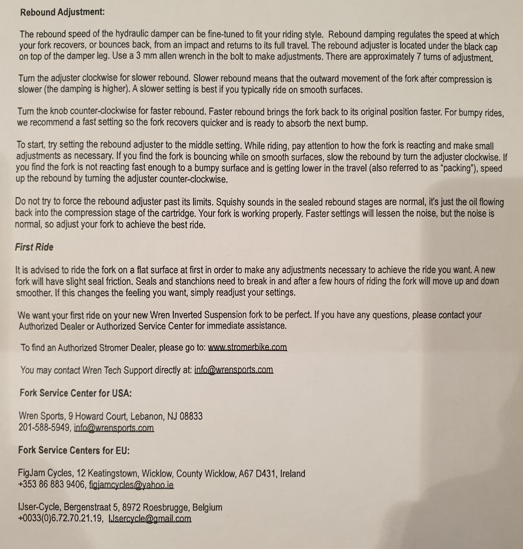Hi, ich will mich jetzt nicht weit aus dem Fenster lehnen aber wenn ich meine Unterlagen richtig deute, kann man den Rebound einstellen. Und zwar am rechten Rohr, oben mit einem 3er Imbus. Ich versuche später mal die Einstellungen hier hochzuladen.