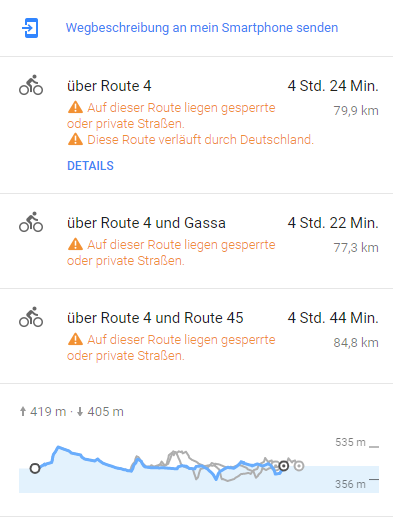 Zukünftig könnte auch regelmässig die Strecke 2 hinzukommen, hier würde ich dann höchst warscheinlich einmal in der Woche in Richtung A, den Tag später in Richtung B fahren (Akku kann also geladen werden).