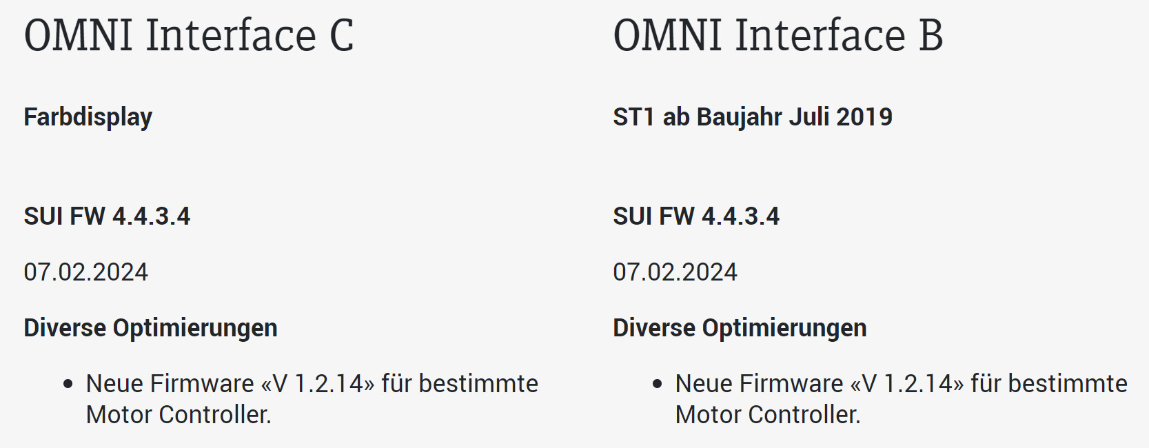 Neue FW wird per OTA (Over the Air) automatisch ausgeliefert. Das geschieht in Wellen und kann deshalb dauern. Bei mir ist das meistens 4-6 Wochen nach dem Release. Man kann das Upgrade auch beim Händler oder der myStromer AG (info@stromerbike.com) unter Angabe der VIN Nummer (im Akkufach, re Kettenstrebe unten oder der OMNI App einsehbar) beantragen (Push). Danach ist es sofort im Omni verfügbar und kann installiert werden.