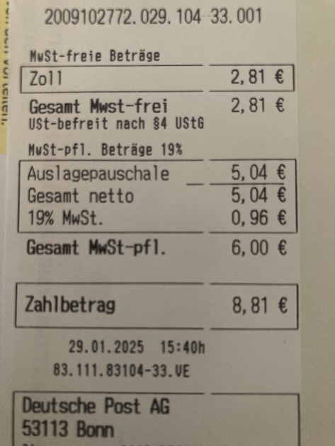 (29.01.2025, 22:15)MarkusSi schrieb: Wow, das ist ja Wahnsinn. Also 50£ Mindestbestellwert + 50£ Porto + 30£ Zoll?