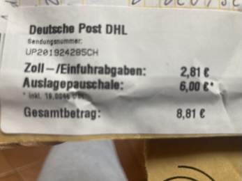 (Ps: für zukünftige Bestellungen: wenn man in die Schweiz bestellt muss man zusätzlich zu den fast 50.- Porto (DHL) auch noch fast 30.- Zollgebühren miteinberechnen ? vielleicht wäre der Weg über Deutschland billiger..)